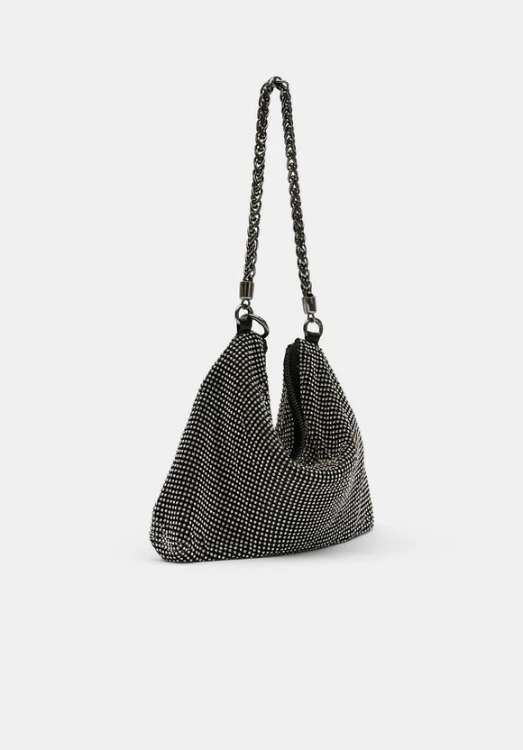 Chain handles and slouchy, pouch-style silhouettes are trending right now when it comes to accessories. Which is why we combined both for our Alma bag. And in a nod to the noughties, we’ve covered it in tiny gem embellishments for a dose of sparkle that makes any outfit party-ready.