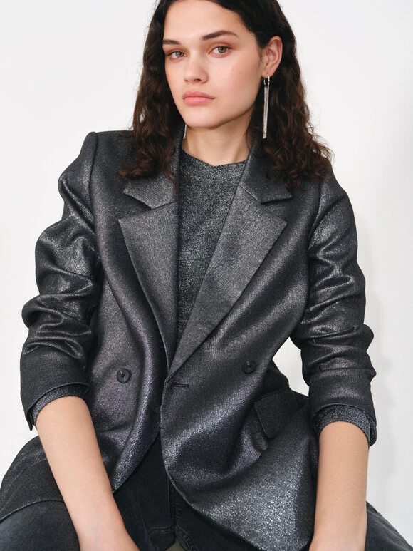 Party-ready pieces don’t always mean dressing all the way up. Our Hazel blazer combines a classic cut with a cool, contemporary metallic fabric for seasonal sparkle that works both day and night. Chuck it on over the matching trousers and a simple long-sleeved tee.