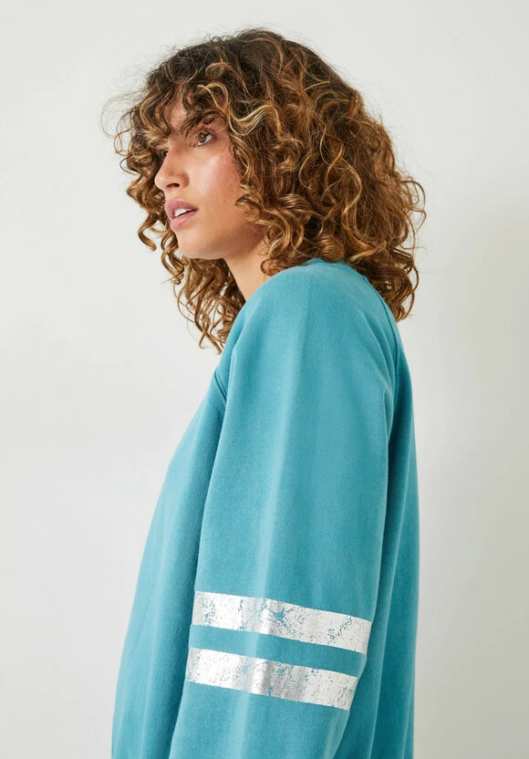 Comfy cotton and streaks of metallic? Consider this a levelled-up take on your staple sweatshirt. All the classics are still in place, too: crewneck collar, ribbed trims and soft, slouchy silhouette. But this version will take you past the parameters of your couch. That’s a win-win.