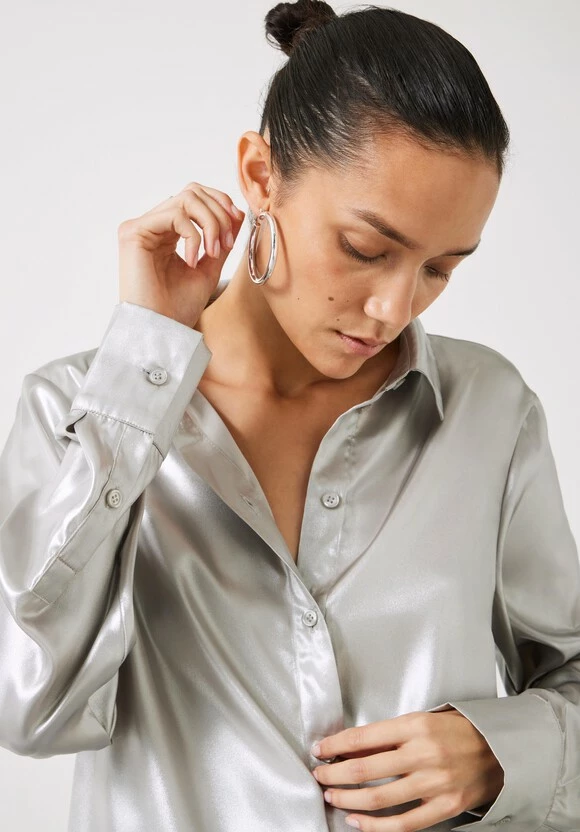 Newsflash: metallics don’t need to be ultra-dressy. In fact, our Natasha shirts shows how to make silver work for daytime or laid-back evening plans. We think it looks great layered over dark indigo denim.