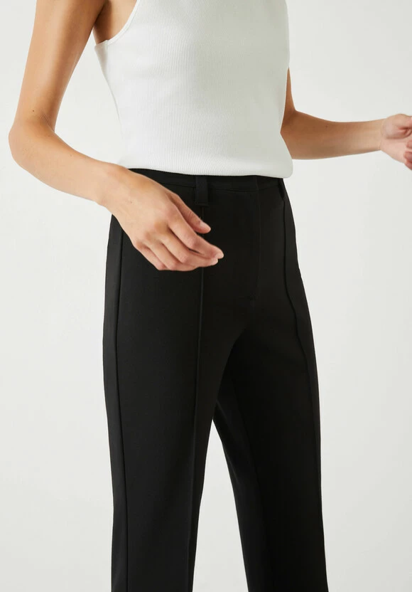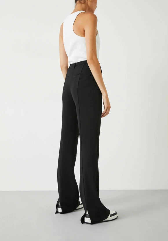 Flared silhouettes are having a moment. This pair is cut from a stretchy fabric for a slim fit up top, before flaring out into ultra-wide cuffs slashed with a subtle split at the back. We think they look great layered over boots, trainers or heels.
